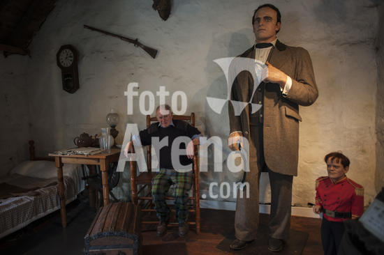 ny140917205804 Peter MacAskill with the life-size replica of Angus MacAskill in the small museum he created in Dunvegan on Isle of Skye, Scotland, May 14, 2017. The museum celebrates two giants in the Scottish family ? one who lived in the 19th-century, and one on YouTube. (Paulo Nunes dos Santos/The New York Times/Fotoarena)