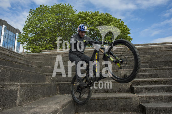 ny140917210204 Danny MacAskill, one of the world's premier trick bike riders, in central Glasgow, Scotland, May 16, 2017. A museum on the Isle of Skye celebrates two giants in the Scottish family ? one who lived in the 19th-century, and MacAskill, one on YouTube. (Paulo Nunes dos Santos/The New York Times/Fotoarena)