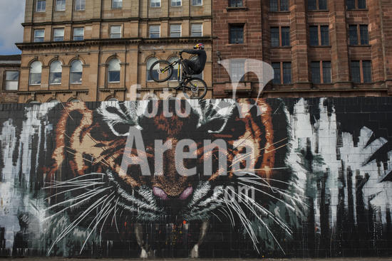 ny140917210604 Danny MacAskill, one of the world's premier trick bike riders, in central Glasgow, Scotland, May 16, 2017. A museum on the Isle of Skye celebrates two giants in the Scottish family ? one who lived in the 19th-century, and MacAskill, one on YouTube. (Paulo Nunes dos Santos/The New York Times/Fotoarena)