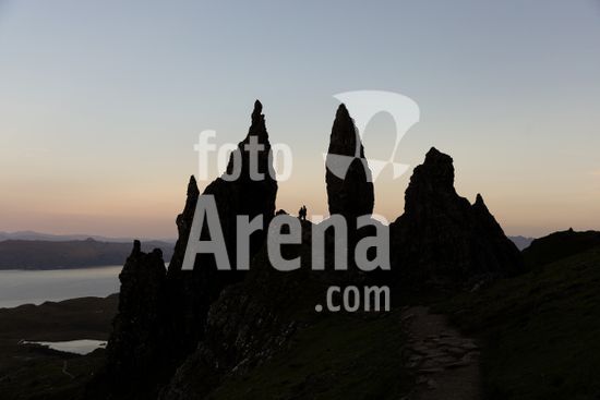 01056858 geography / travel, Great Britain, Scotland, Highlands, Isle of Skye, view from the Storr, Old man of Storr rocks, used as a film location in Ridley Scott's Prometheus