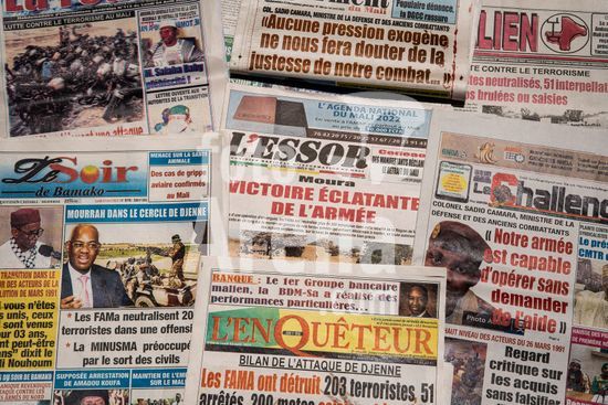 ny310522152905 Malian newspapers hailed the Òresounding victoryÓ of the Malian military days after the attack in Moura, April 4, 2022. Civilian deaths have spiked in Mali since Russian mercenaries of the Wagner Group began operating alongside the military Ñ in late March, hundreds were executed in the village of Moura. (The New York Times)
