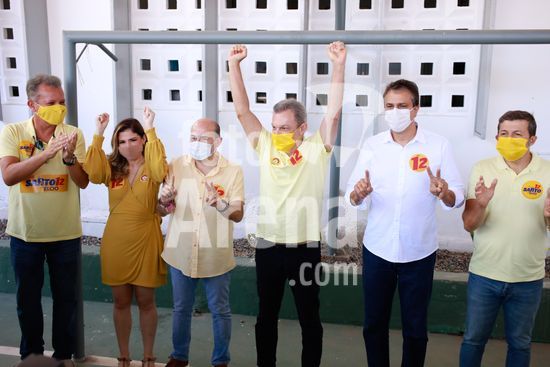 1999941 Neste domingo (29), eleitores vão decidir o segundo turno na disputa pela prefeitura de Fortaleza, entre Sarto (PDT) e Capitão Wagner (Pros). Na foto, Prefeito Roberto Cláudio, Governador Camilo Santana, Élcio Batista, Sarto e outros membros de sua equipe.