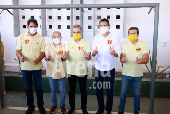 1999937 Neste domingo (29), eleitores vão decidir o segundo turno na disputa pela prefeitura de Fortaleza, entre Sarto (PDT) e Capitão Wagner (Pros). Na foto, Prefeito Roberto Cláudio, Governador Camilo Santana, Élcio Batista, Sarto e outros membros de sua equipe.