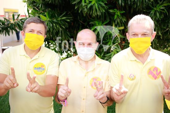 1999962 Neste domingo (29), eleitores vão decidir o segundo turno na disputa pela prefeitura de Fortaleza, entre Sarto (PDT) e Capitão Wagner (Pros). Na foto, Élcio Batista, prefeito Roberto Cláudio e Sarto.