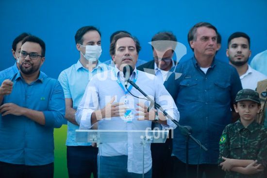 2036589 Visita do Presidente Jair Bolsonaro ao Ceará, para inauguração dos anéis viários no município de Caucaia e Maracanau, nesta sexta feira (26). Deputado Federal Capitão Wagner se pronuciando. Pedro Duarte Guimarães, Presidente da Caixa Econômica.