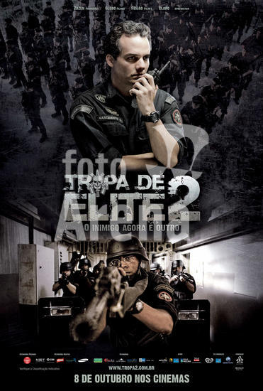 MCDELSQ_EC021 ELITE SQUAD: THE ENEMY WITHIN, (aka TROPA DE ELITE 2, aka O INIMIGO AGORA E OUTRO), top: Wagner Moura on Brazilian poster art, 2010, ©New Video/courtesy Everett Collection/Fotoarena