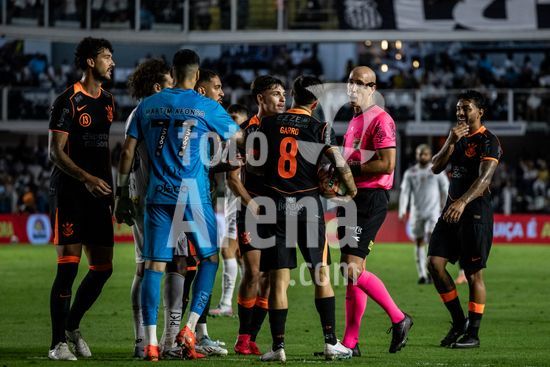 2872088 Árbitro Lucas Canetto Bellote durante a partida entre Santos e Corinthians, válida pela 4ª rodada do Paulistão, realizada na noite desta quinta (22) na Vila Belmiro em Santos, SP.