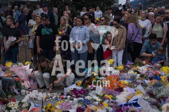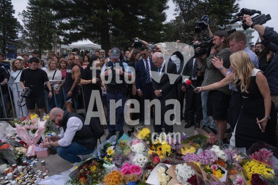 Muslim men pray on Monday, Dec. 15, 2025, at an impromptu memorial to the victims of the deadly shooting attack at Bondi Beach in Sydney, Australia. Australian police said on Monday that they expected to bring criminal charges against the surviving gunman in a deadly shooting spree that targeted a Jewish holiday celebration in Sydney. (Matthew Abbott/The New York Times/Fotoarena)