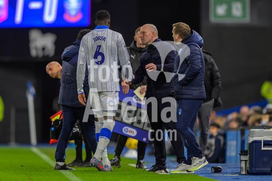 2860889 O treinador do Sheffield Wednesday, Henrik Pedersen, conversa com Dominic Iorfa (6, Sheffield Wednesday) apos sua substituicao durante a partida do Sky Bet Championship entre Ipswich Town e Sheffield Wednesday FC, no Portman Road, em Ipswich, Inglaterra. (Foto de Keeran Marquis/Sports Press Photo/SPP) (Keeran Marquis/SPP)