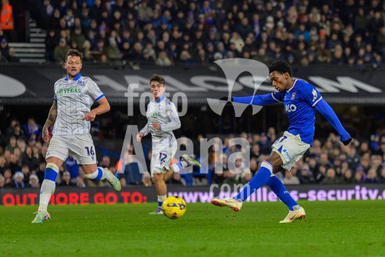 2860891 Jaden Philogene (11 Ipswich Town) marca o segundo gol da equipe, fazendo o placar de 2 a 0 durante a partida do Sky Bet Championship entre Ipswich Town e Sheffield Wednesday FC no Portman Road em Ipswich, Inglaterra. (Foto de Keeran Marquis/Sports Press Photo/SPP) (Keeran Marquis/SPP)