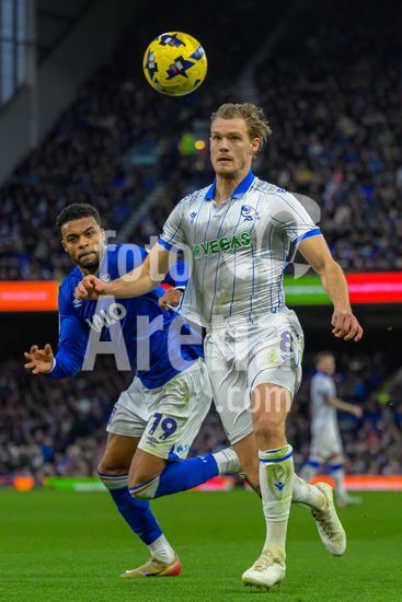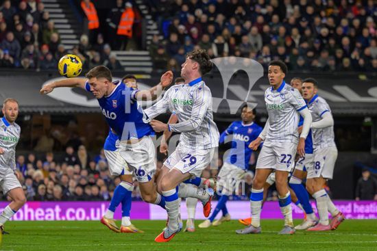 2860894 Dara O'Shea (26 Ipswich Town) agarrado por Olaf Kobacki (19 Sheffield Wednesday) dentro da area durante o jogo do Sky Bet Championship entre Ipswich Town e Sheffield Wednesday FC no Portman Road em Ipswich, Inglaterra. (Foto de Keeran Marquis/Sports Press Photo/SPP) (Keeran Marquis/SPP)