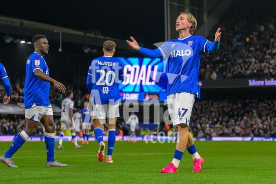 2860924 Jack Clarke (47, Ipswich Town) comemora o terceiro gol da equipe durante a partida do Sky Bet Championship entre Ipswich Town e Sheffield Wednesday FC, no Portman Road, em Ipswich, Inglaterra. (Foto de Keeran Marquis/Sports Press Photo/SPP) (Keeran Marquis/SPP)