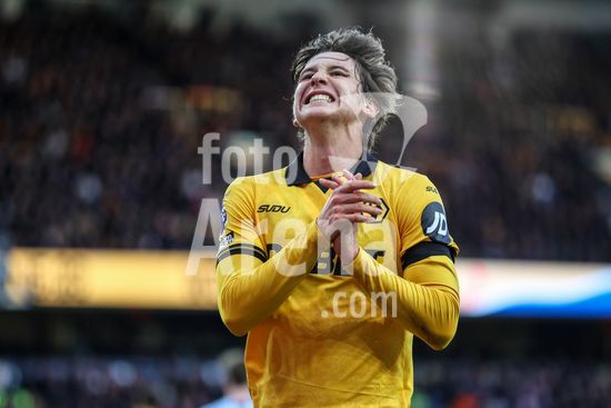 2860959 Jorgen Strand Larsen (9 Wolves) persegue a bola durante a partida de futebol da Premier League entre Wolverhampton Wanderers e Brentford no estadio Molineux em Wolverhampton, Inglaterra. (Natalie Mincher/SPP)