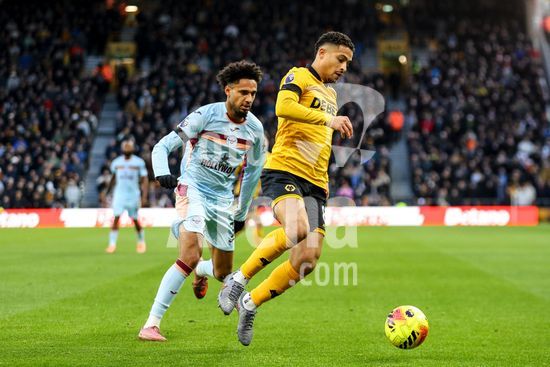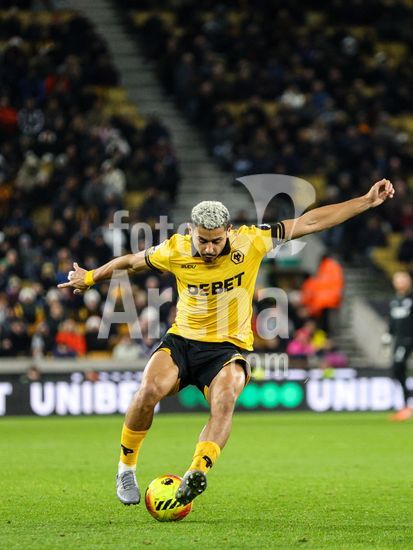2860951 Mateus Mane (36 Wolves) com a bola durante a partida de futebol da Premier League entre Wolverhampton Wanderers e Brentford no estadio Molineux em Wolverhampton, Inglaterra. (Natalie Mincher/SPP)