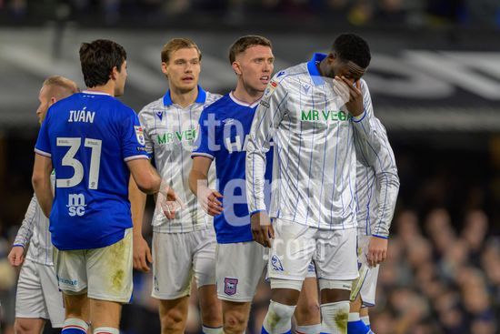 2860921 Dara O'Shea (26, Ipswich Town) demonstra desanimo apos o arbitro David Webb nao ter marcado um penalti durante o jogo do Sky Bet Championship entre Ipswich Town e Sheffield Wednesday FC, no Portman Road, em Ipswich, Inglaterra. (Foto de Keeran Marquis/Sports Press Photo/SPP) (Keeran Marquis/SPP)