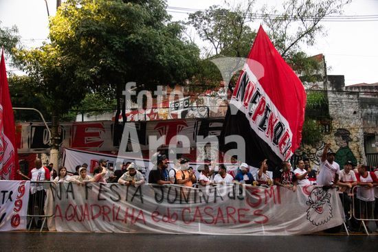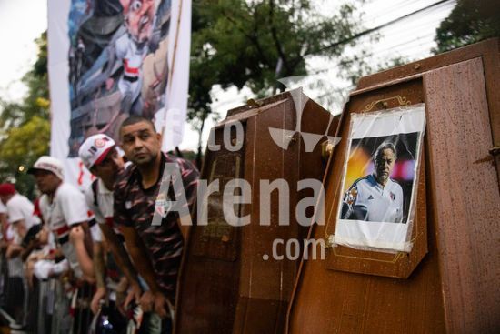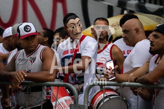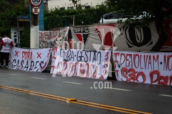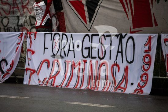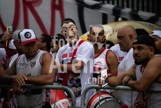O conselho deliberativo pelo impeachment de Julio Casares, presidente do São Paulo Futebol Clube, acontece na noite desta sexta-feira (16) no MorumBIS, em São Paulo, SP. As torcidas organizadas do clube convocaram um protesto nos arredores do estádio pelos escândalos nos bastidores e o desempenho recente da equipe. Na foto, Marco Aurélio Cunha, da oposição de Casares.