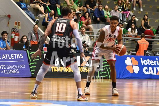 2871354 Imagens da partida de basquete entre o Caxias do Sul Basquete e o Franca, disputada no Ginásio do SESI, válida pelo NBB 25/26. Caxias do Sul, RS (21).