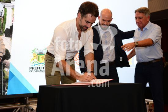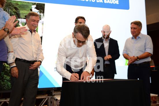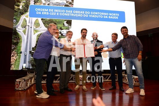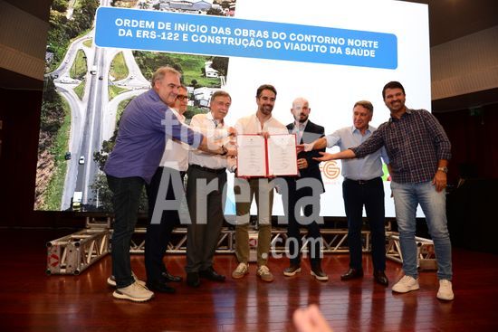 Imagens da cerimônia de lançamento da Ordem de início das obras do contorno norte da ERS 122, entre os quilômetros 69 e 80, e construção do viaduto da N Sª da Saúde, com a presença do governador Eduardo Leite, do Prefeito de Caxias do Sul Adiló Didomênico, do vice-prefeito Edson Néspolo, na ex-vice prefeita Paula Ioris, do diretor presidente da CSG Ricardo Peres , e de outras autoridades do Estado e da Região, que aconteceu no Salão Paraquial da Comunidade Nossa Senhora da Saúde. Caxias do Sul, RS (16).