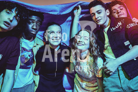 | Descrição: | The cast of "Stranger Things," from left: Finn Wolfhard, Caleb McLaughlin, Millie Bobby Brown, Sadie Sink, Noah Schnapp and Gaten Matarazzo at the Whitby Hotel in New York, June 12, 2019. Monstrous evil isn?t the only thing that?s grown in the fictional town of Hawkins, Ind., and the young stars of Netflix?s coming-of-age series reflect on where they?ve been and where they?re headed. (Bryan Derballa/The New York Times/Fotoarena) |