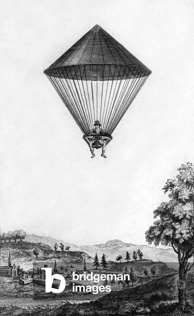 | Pauta: | Parachute experiment by french physicist Louis Sebastien Lenormand, 1783, engraving by Moissy |