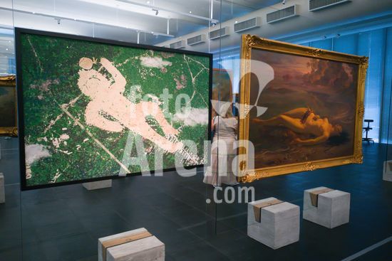 | Descrição: | Turistas e visitantes admiram obras do acervo permanente do MASP (Museu de Arte de São Paulo Assis Chateaubriand). Principal museu de arte do Brasil, situa-se na Avenida Paulista. Na foto, obra Natureza Morta I, de Denilson Baniwa a esquerda e Moema, de Victor Meirelles, a direita. Imagem gerada por celular. |