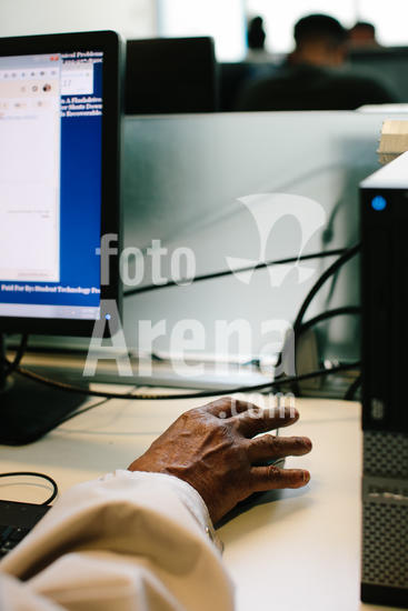 | Título: | Carl Beamon responds to an invitation for the class of 2018 Master’s Degree Students Graduation Party, in the computer lab at John Jay College of Criminal Justice in New York. |