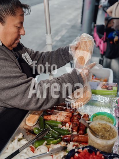 | Descrição: | Ñ EMBARGO: NO ELECTRONIC DISTRIBUTION, WEB POSTING OR STREET SALES BEFORE 5:01 A.M. ET ON SATURDAY, JUNE 29, 2024. NO EXCEPTIONS FOR ANY REASONS Ñ Martha Soto prepares a hot dog at her cart, where she works five days a week in front of the star for Bing Crosby along the Hollywood Walk of Fame on Hollywood Boulevard, in Los Angeles, May 25. 2024. Los Angeles lifted restrictions that had forced the predominantly Latino and immigrant workforce of street vendors on Hollywood Boulevard to dodge citations, but other challenges remain. (Adam Perez/The New York Times/Fotoarena) |